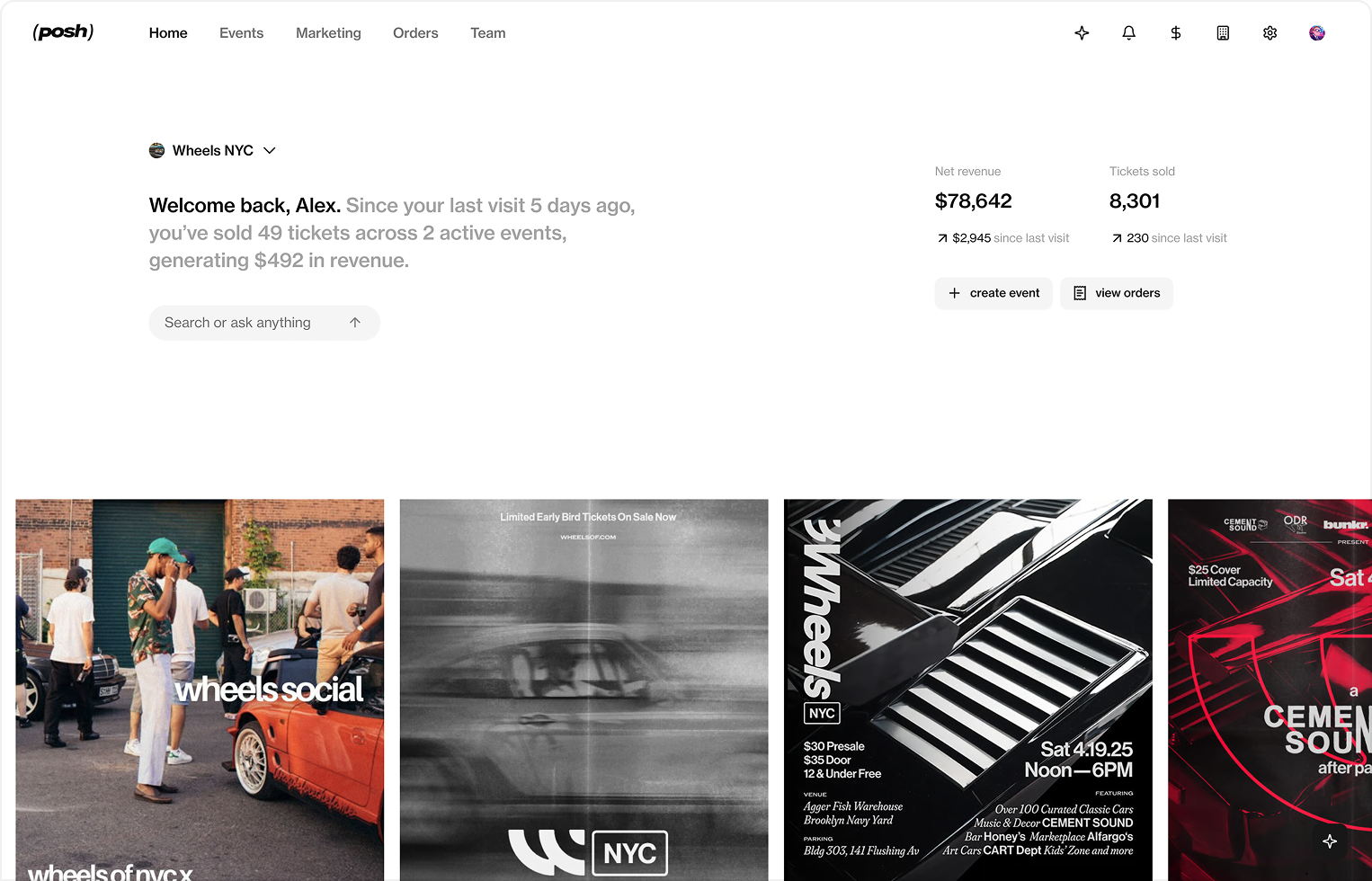 "Posh has been instrumental in helping us scale our events business to 8+ cities, 13 weekly parties, and over 80 events in a single day during major holidays."